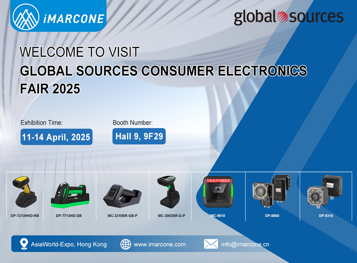 iMARCONE barcode scanner manufacturer is excited to invite you to visit our booth at Global Sources Consumer Electronics, where we will showcase our latest innovations in retail barcode scanner and industrial barcode scanners, such as desktop barcode scanner, wireless barcode scanner, handheld barcode scanner and DPM code scanner and so on.